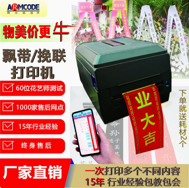阿尔码飘带打印机条幅鲜花店专用手机挽联打印机开业花篮对联春联