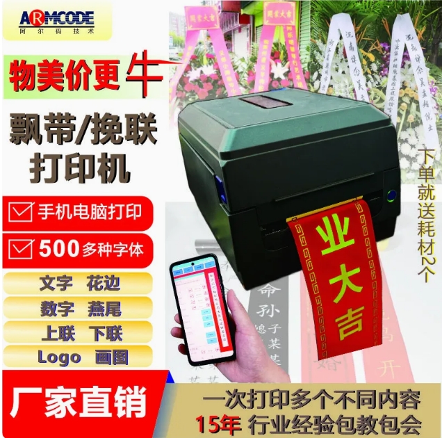 > 阿尔码飘带打印机条幅鲜花店专用手机挽联打印机开业花篮对联春联